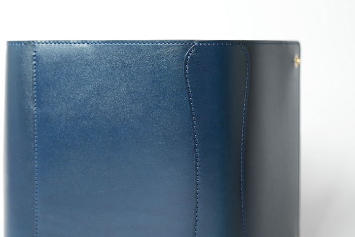 フラップから前身まで、全てサドルプルアップレザーのフレンチネイビーが用いられています。