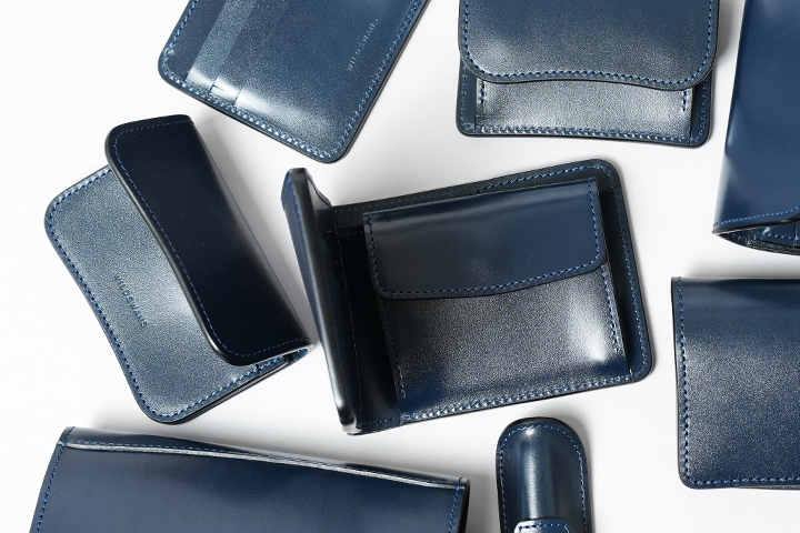 前回と同じくステッチにもネイビーを使用し、重厚感の高いものは穏やかな印象に、流線形の柔和なものはより上品なアイテムへと仕上げています。