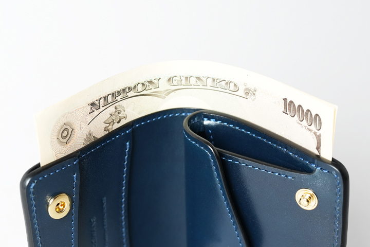 タイトな作りではありますが、本体の側面にある札室には、一番大きな日本紙幣である一万円札も余裕をもって出し入れすることができます。