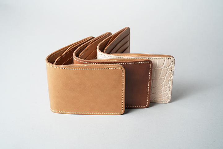 オーソドックスな二つ折り財布のGROUNDER。3つのモデルともに皮革の個性が光る仕上がりとなりました。