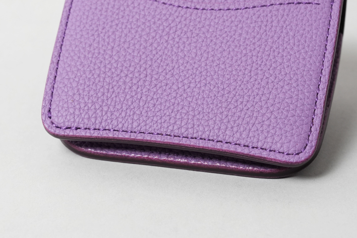 フラップは上下で僅かに段差を設けており、このように下から見ると上部フラップがせり出しています。この段差によって本体を開く際にフラップが指に掛かりやすくなっています。