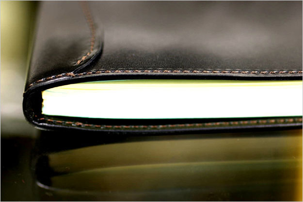 OWL-A5の続きです。OWLに限らずWILDSWANSの革小物は、初めは張りがあってパンパンですが、使用後は上の写真のように、徐々に馴染んでいきます。 先日も述べましたが、OWLはライフ社のノーブルノートを付属して販売しています。選んだのは、Lクリームライティングペーパーを使用した、薄いグレーの8ミリ横罫(100枚糸綴じ製本)です。 個人的に、ライフ社の無地のレポート用紙をずーっと仕事で愛用していたので、書き味の良さは知っていたつもりでした。が、ノーブルノートの場合、インクを使う筆記具でもペンシルでも、ここまで書き味が良いとは知りませんでした。本当に滑らかです。 1度使うと手放せない、というのは本当でした。 (アサヒヤ紙文具店さんのホームページに、開発から完成までの道程や使用レポートが載っていますので、もし未読の方がいらっしゃいましたら、是非お奨めいたします。) YKKのエクセラファスナーもそうなのですが、「たかが○○、されど○○」といった、その精神や気概を見習いたいと、本当に思います。(物を作っているファクトリーが探究心を忘れたらお終いだと思います。)