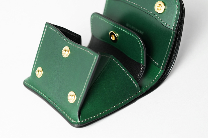 CASAは紙幣、コイン、カードをコンパクトに持ち運ぶことができます。フラップ部分にわずかな段差を設けているのでホックの開閉がスムーズです。