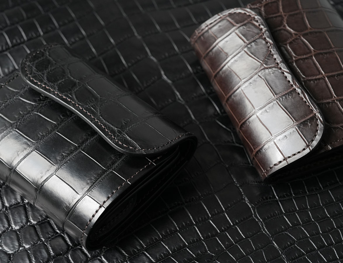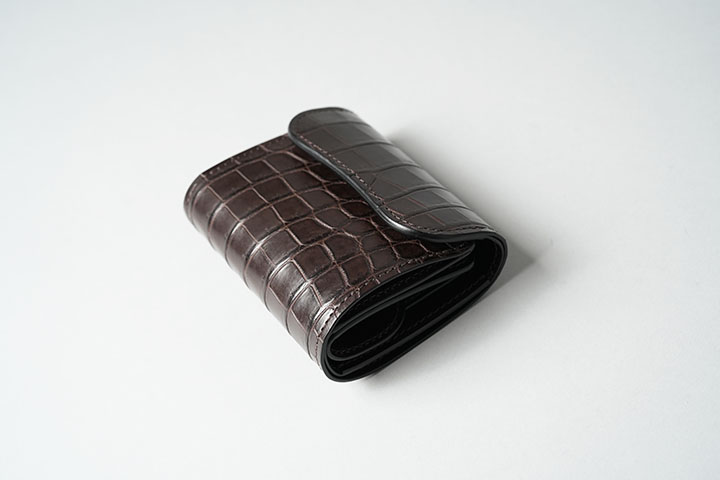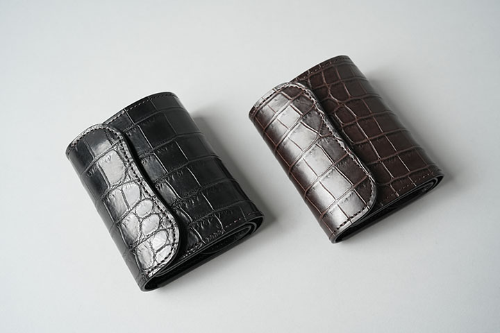 定番の小型三つ折り財布・ENOにクロコダイルバージョンが加わります。