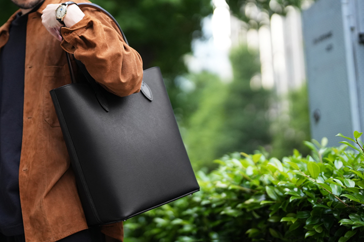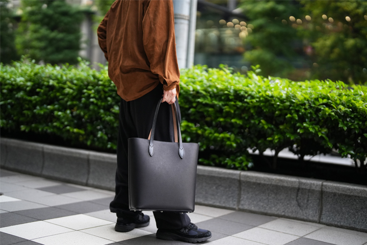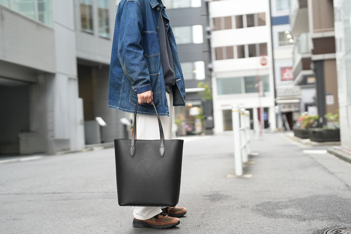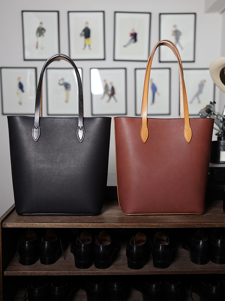 ご覧の通りシンプルなデザインのトートバッグですが、その佇まいからは優雅さや品格を感じ、福田氏が靴作りにおいて追及する「最高の普通」という哲学はこのBarrel Toteにも宿っています。