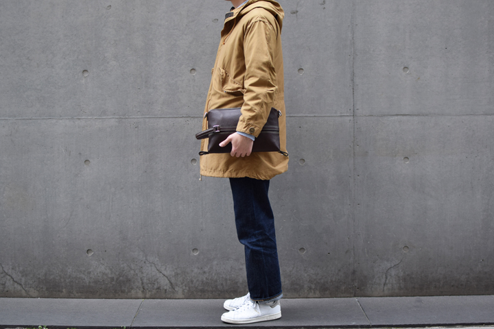 一見するとセカンドバッグのようなフラボナポーチはご自身のスタイルや使用用途により形を変化させることができる、まさに変幻自在なポーチです。