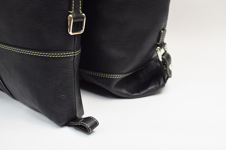 フラボナトートのディテールは外付けポケットが付かない、スタイリッシュなヘルメットバッグのようなイメージです。