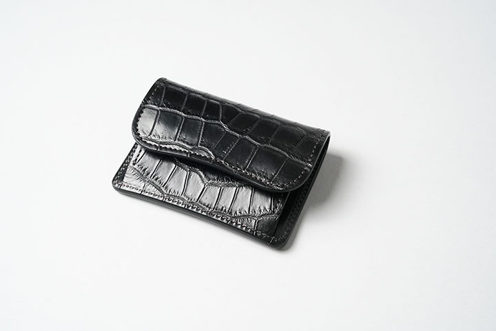 背面やメイン収納部にもカードの収納が可能なTONGUEは、高い汎用性とコンパクトな形状により登場から10年以上が経過した現在においても高い人気を誇ります。また、クロコダイルアイテムは他の皮革以上に、ブラックを王道とする方が多いこともこちらのTONGUEが人気の理由です。