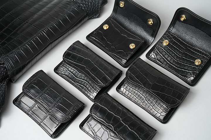 現在、WILDSWANSではクロコダイルフェア期間中ではありますが、すでに様々な色、種類のクロコダイル製品を販売しています。これまでに登場したアイテムの数々に比べると今回ご紹介するTONGUEは少し地味な印象があるかもしれませんが、これまで数回発売したこちらのTONGUEはいずれも早い段階で完売となる人気アイテムです。コンパクトなアイテムのため、クロコダイルにあまり馴染みのない方にもおすすめです。なお、こちらの製作に使用したクロコダイルも、以前と同じナイルクロコとなりますが、カラーについてはブラックの1色でのご用意となります。