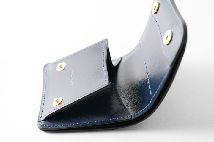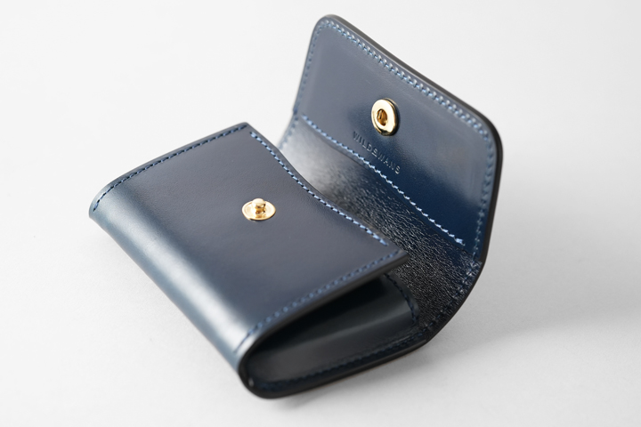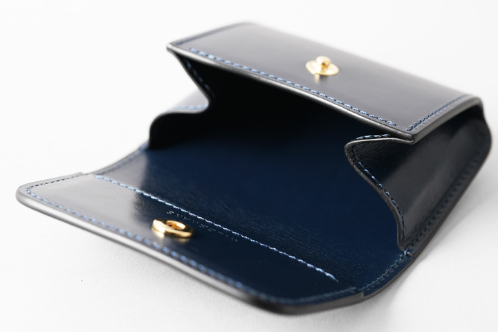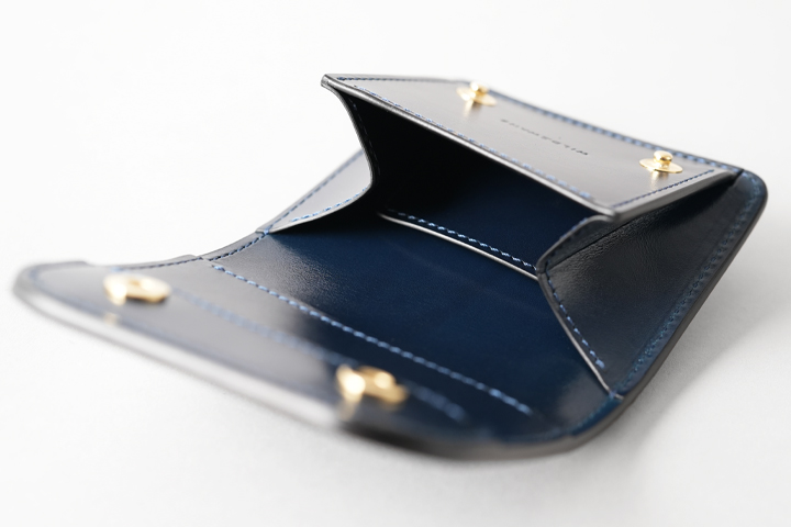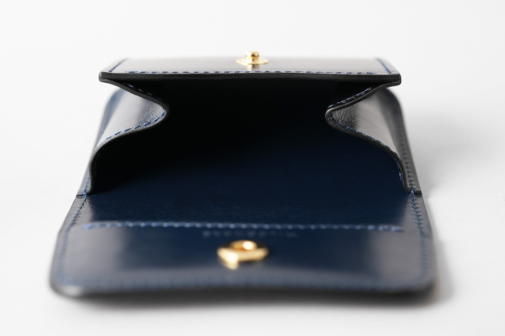 オーソドックスな名刺入れ、カードケースとしてご使用を頂けるほか、ホック付きのフラップと独特なマチ構造によってミニウォレットしてもご使用頂けるアイテムです。