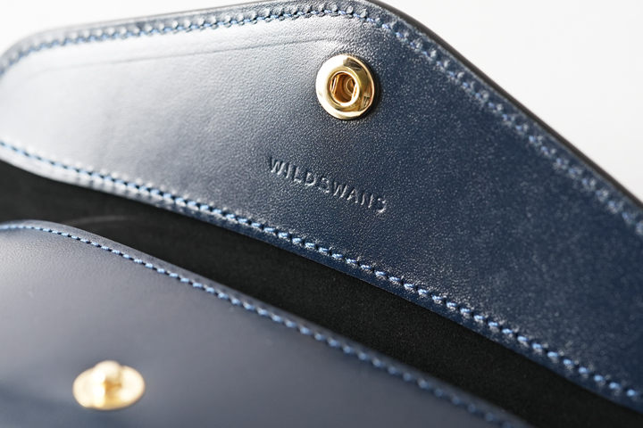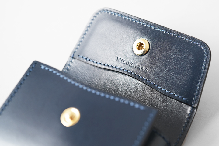 外装に収納部は持たないスマートなデザインで、現行のWILDSWANSの名刺入れの中で唯一フラップにホックが付いたモデルです。