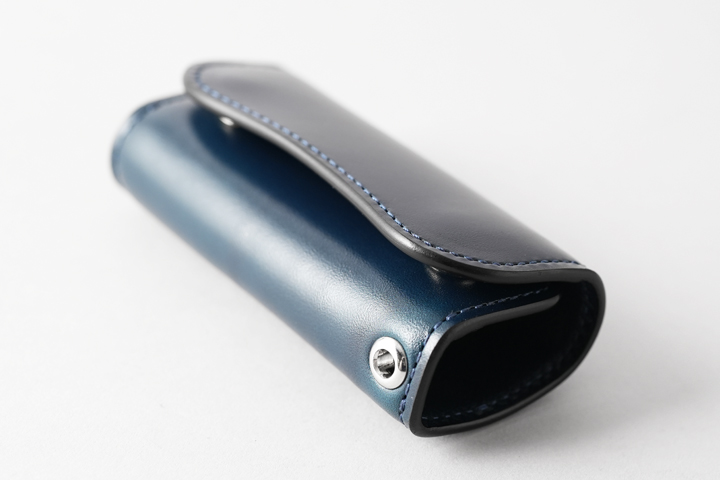 手に取ると本体はがっしりとしており、サドルプルアップを使用していることも勿論ですが、皮革のハリ感を活かした設計によって構造的に眼鏡ケースとして必要な強度を確保しています。