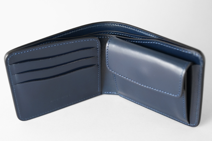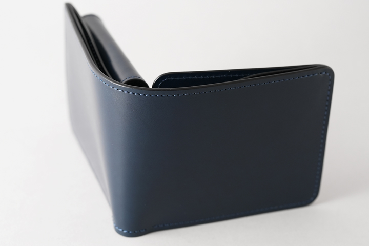 開閉にはホックなどを使用しないため、ご使用からしばらくはサドルプルアップのハリによってお財布は開いたままですが、ご使用を頂くことで段々と馴染み二つに閉じるようになって参ります。