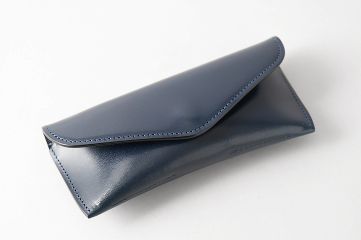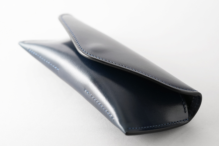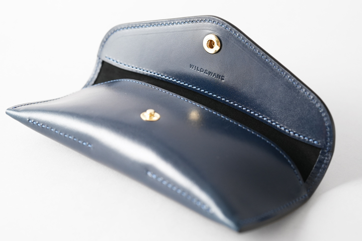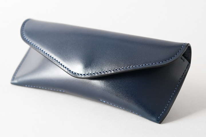 外装は一枚の皮革が使用されておりますが、眼鏡の形に合わせるような立体的な形を形成しており、優雅な佇まいのフォルムです。