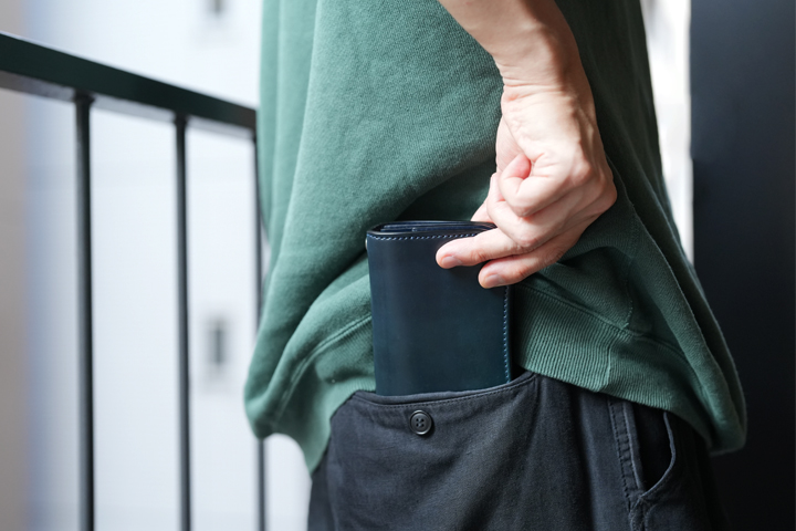 便利な背面ポケットには使用頻度の高いクレジットカードや、交通系ICカードを収納してスマートにご使用ください。