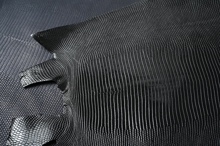 リングマークリザード(ミズオオトカゲ)は、独特な美しさと高級感を持つエキゾチックレザーの一つです。学術名はVaranus salvatorで、その特徴的な外観から世界のファッション業界でも人気を集めています。リングマークリザードは、その独特の外観と多様な仕上げ方法により、様々な表現が可能な高級皮革素材として評価されていることから、ファッションアイテムや小物製作に広く使用され、個性的で高品質な製品を生み出すことができます。意外に思われるかもしれませんが、リザードはクロコダイルと並ぶエキゾチックレザーを代表する皮革と言われています。クロコダイルと異なり胴体が小さいことから、皮革として使用できる面積も小さくあまり大きなアイテムには使用ができませんが、小粒で適度に整った鱗模様は美しく、こちらを使用したアイテムはどれも完璧なまでに上品な佇まいになるから不思議です。一方で道具として長く使用できる製品を製作するWILDSWANSが取り扱う皮革は、どれも耐久性に優れた皮革です。トカゲというとクロコダイルに比べて軟(やわ)なイメージをお持ちかもしれませんが、まったくそんなことはありません。言うまでもなく、リングマークリザードもこの条件を十分に満たしている皮革となります。