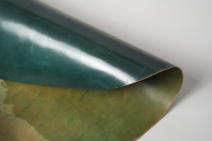 こちらは数ヶ月使用したシェルコードバン/TONGUE/グリーンです。目に見えた変化はまだ起きていませんが、じわりと透明感が出てきているようです。シェルコードバンの変化は徐々に進み、長い年月を経て、ふとした時に大きな変化を感じます。