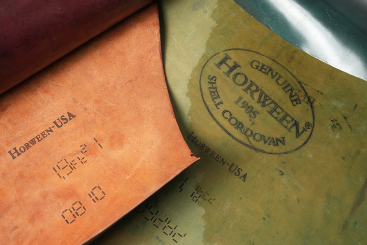 さらに、一部の製品は「ホーウィンスタンプ」と呼ばれるスタンプが含まれるような裁断を行っています。このスタンプはファンにはたまらないホーウィン社の証とも言えるもので、ホーウィン社の雰囲気がそのまま製品に移ったような、格別な印象に仕上がっています。なお、ナチュラルのような明るい色味の皮革は「HORWEEN‐USA」という文字の表示のみとなっています。シェルコードバン製造の過程でレザーを積み上げる事がありますので、その際に移染する事を防ぐためです。