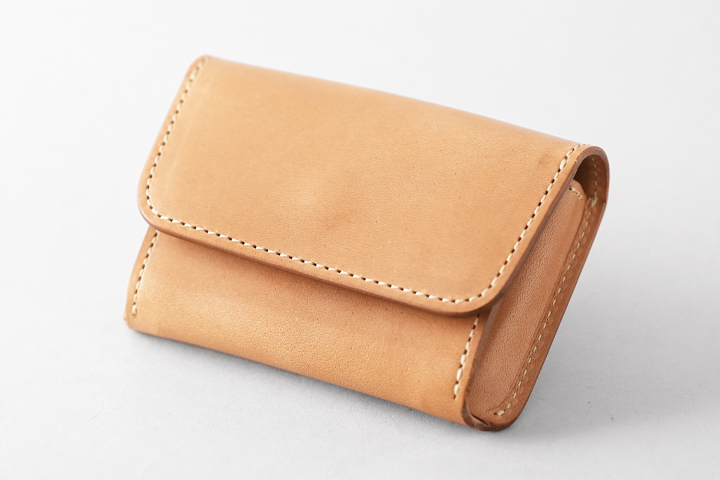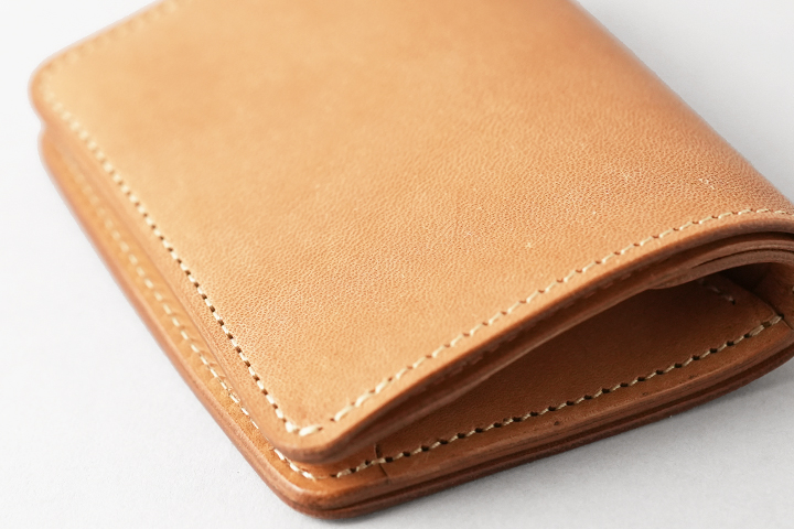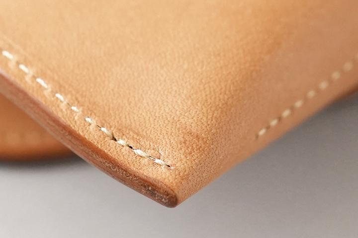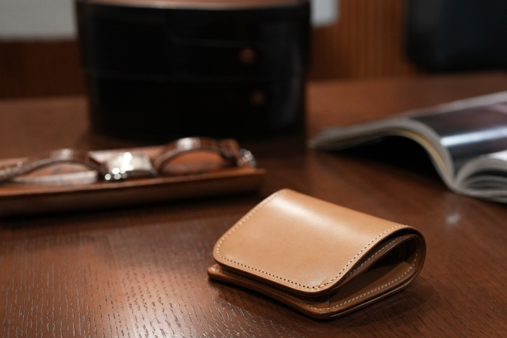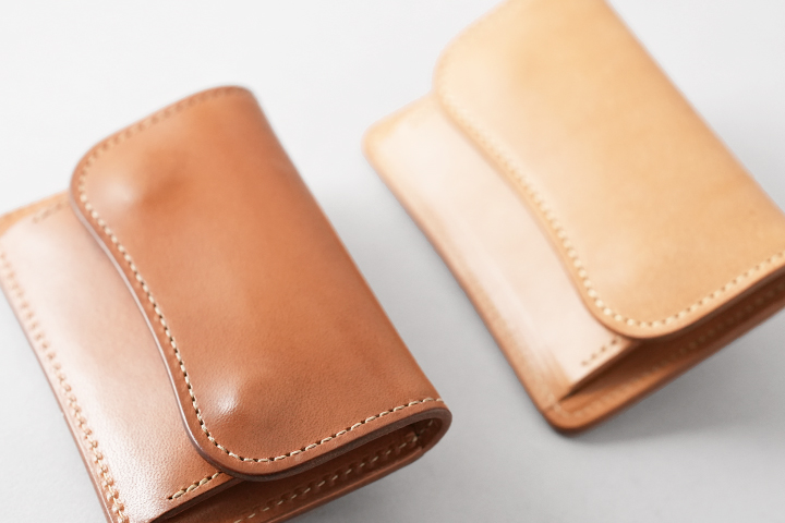 仕上がった皮革は頑強で、染色を行っていないヌメ革のために経年変化もじっくりとお愉しみ頂けます。