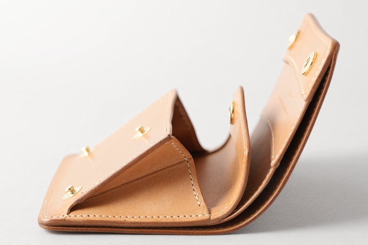 金具を使用せず、折り紙のように革を畳んで使用するマネークリップです。