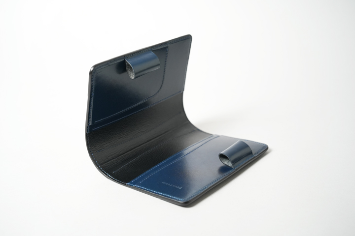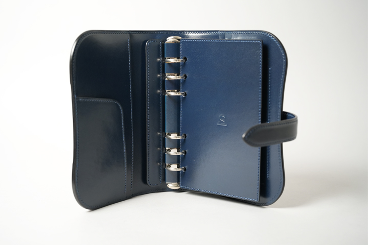 The CANOPUS is a versatile cover designed for A6-size notebooks. Despite its simple design, it is sturdy, with leather reinforcements on the spine and at the four corners. Both the exterior and interior are made of leather. In addition to holding a notebook, the back of each cover has a gusset pocket with a different structure, allowing you to carry business cards and memos.