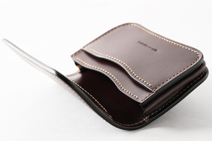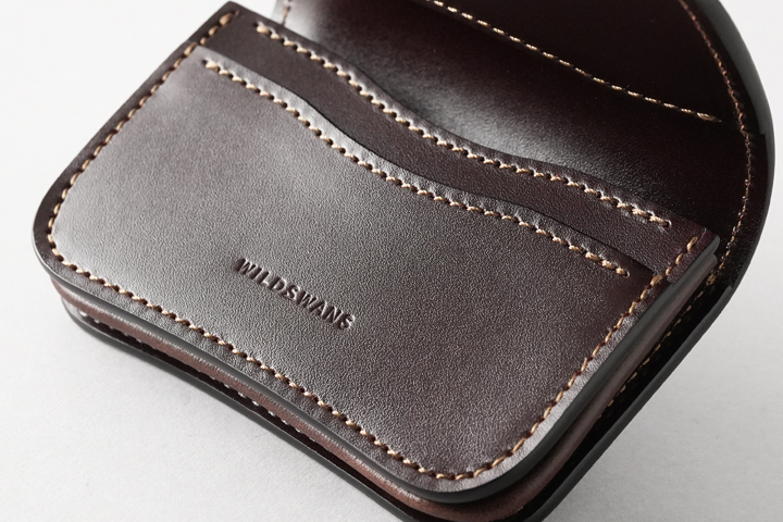 1つ前にご紹介したCASAと同じミニ財布のカテゴリに位置するアイテムですが、また少しコンセプトの異なる人気のモデルです。 WILDSWANSの小型のアイテムには珍しく背面にはポケットを持たないすっきりとしたデザインで、その分切れ目の無い一枚の革の変化をじっくりとお愉しみ頂けます。