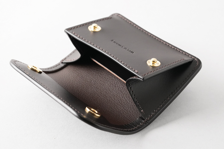 多機能コインケース・TONGUEをベースにフラップ部分にハトメ金具を取り付けたモデルです。