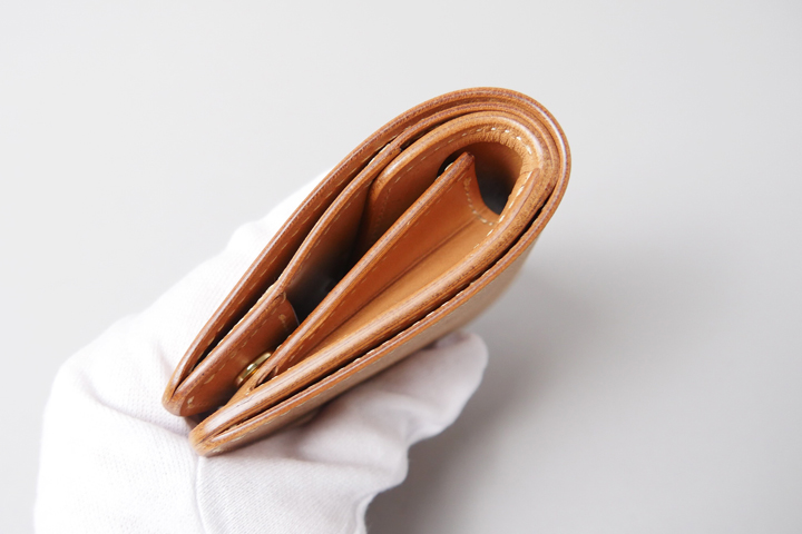 The large-capacity coin case has a partition where you can also store cards. The coin case is separate from the main body, and when seen from the side, the main body and coin pocket overlap, creating a beautiful two-layered cover.