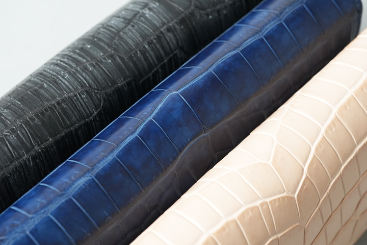 皮革業界において、クロコダイルといえばエキゾチックレザーの王様とも言える絶対的な存在です。その独特な模様と絶対的な存在感は多くの人々を魅了し、名だたる大手メゾンブランドによって数々の銘品が生まれてきました。模様ひとつとっても印象がガラリと変わり、天然素材であるがゆえに同じ模様は世界にたった一つとして存在しません。軽量である一方で優れた耐久性を備えたところも流石は最高級レザーといったところで、これだ、と思う個体と出会えた時の感動には、得も言われぬものがあります。そんなクロコダイルを使用した特別な製品の数々を、クロコ愛好家の皆様にお届けします。ぜひご注目ください。
