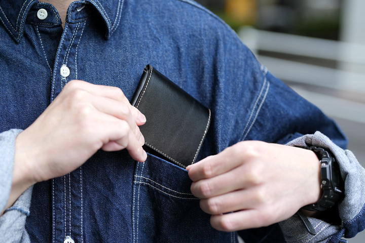 ・油分が多い皮革のため、コバ(革の裁断面、製品の縁)の部分に革の重なりが線のように現れるケースがあります。また、ご使用頂くことで線がより顕著に現れる可能性があるため、コバ部分を過度に変形させないようご注意ください。
