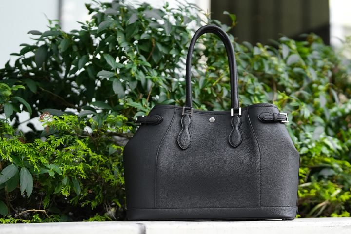 モンパルナスはバッグ用の皮革という明確な使用目的を持って開発されたもので、厳選された原皮を用いた、ソフトな質感を持つ上質な牛革です。肌理の細かいシボのある表面は水分や傷にも比較的耐性があり、クロム鞣しでありながら上品な艶が現れるのが特徴です。