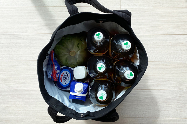 Lサイズはスーパーでのお買い物バッグとしての使用がおすすめです。容量の豊富さはもちろんのこと、生鮮品や汁物の水分が付いてしまっても、内装だけ水洗いするなどのお手入れが可能です。旅行で荷物が増えてしまったとき用のサブバッグとしても大活躍します。