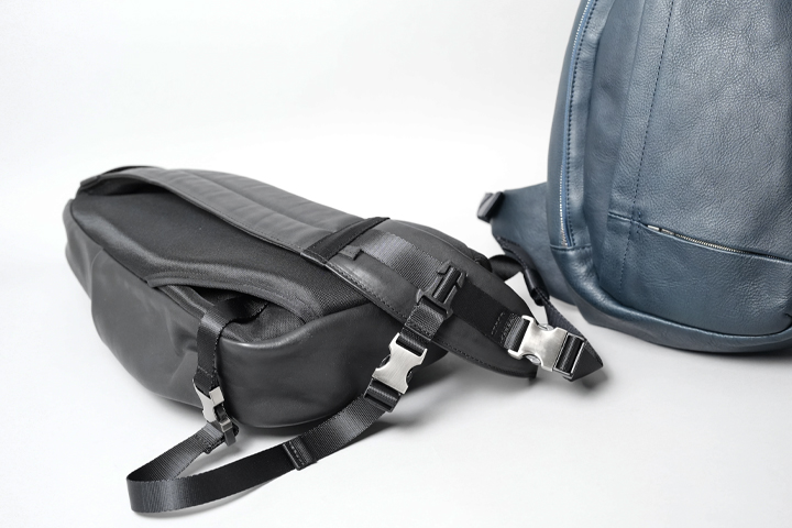 革製のCERVINOは表に見える部分に革を使用しているので、コーデュラナイロン製とは雰囲気が大きく変わり、ショルダーストラップとクロスストラップのバックルをメタル製に変更して、高級感高まる大人の装いとなっています。内側のメッシュ生地はコーデュラナイロン製と同じ素材を採用していますが、表裏を逆にして目の細かい部分をメインとし、革製でも違和感のない仕上がりになっています。現在カラーバリエーション豊富にご用意がありますので、ぜひ店頭で見比べてみてください。