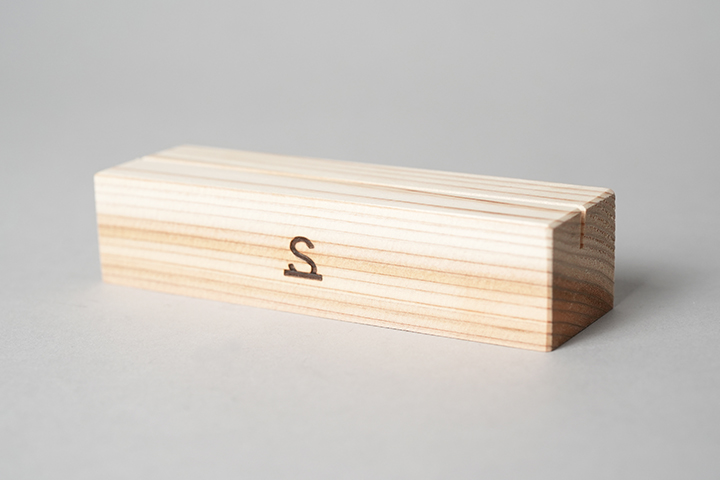 本体の正面にはWILDSWANSのSロゴが刻印されています。新木場の老舗材木問屋から取り寄せた国内の天然の杉に刻印されるロゴマークは、レザーの刻印とは違った迫力があります。