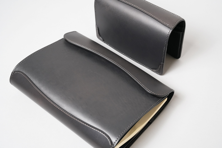 財布類だけでなく、ステーショナリーのご用意もございます。引き締まったシェルコードバン/ブラックと、アンティークのようなオリジナルコードバン/グレー。どちらのシリーズも、品格がありつつ日常に溶け込むカラーです。