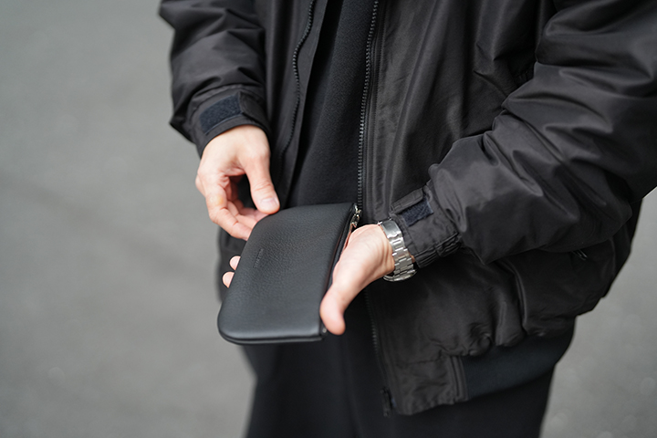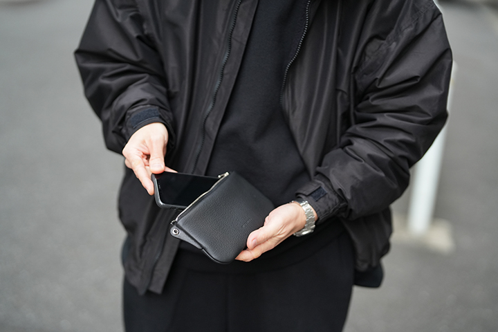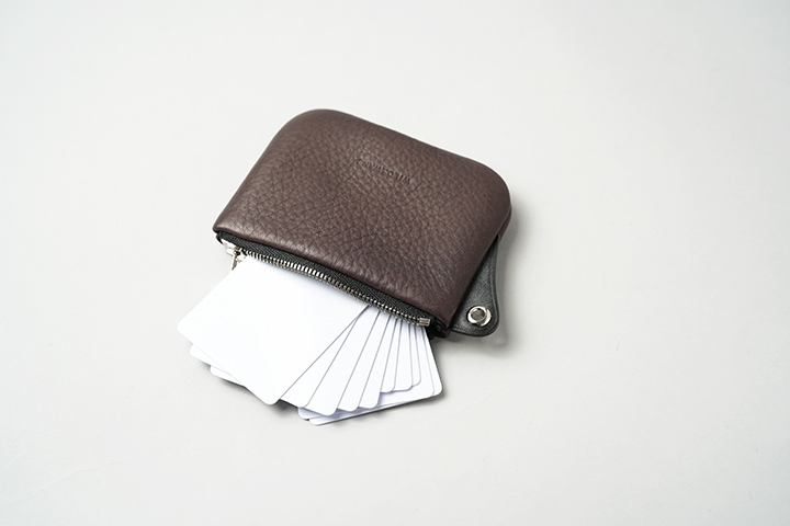 Mサイズも財布として使用して頂くことも可能です。Sサイズに比べて紙幣を折らずに収納できるため、長財布と同じような感覚で使用できます。また、Sサイズよりも一回り大きいため、アメニティポーチとしてもご利用が可能です。WILDSWANSが主に取り扱うタンニン鞣しの皮革に比べ、THEAは水分に対しても一定の耐性がありますので様々な使用環境で気兼ねなくご使用頂けます。