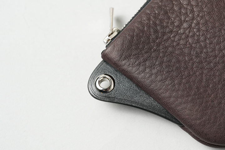 また、NORMAは両サイズ共に本体の片側にハトメ加工が施されています。こちらのハトメにWILDSWANSのオリジナルの金属パーツやレザーストラップを組み合わせて使用することもできます。