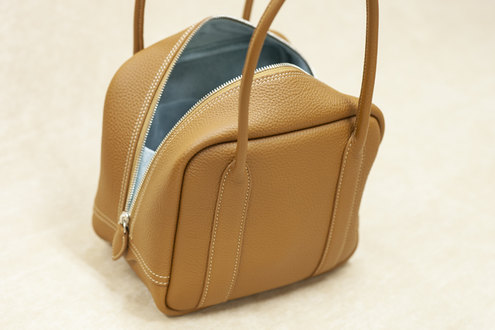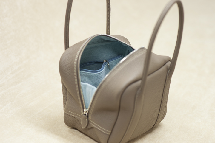 外装素材にはドイツ・ペリンガー社のシュランケンカーフを使用しており、この皮革のハリや弾力性によって生み出されたふくよかなシルエットが生み出す上品さや愛らしさが印象的です。