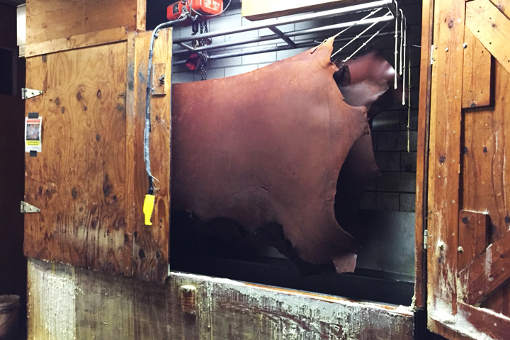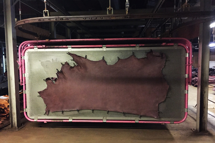 原皮は鞣し剤に浸され、じっくりと時間をかけて「皮」から「革」へと鞣されていきます。