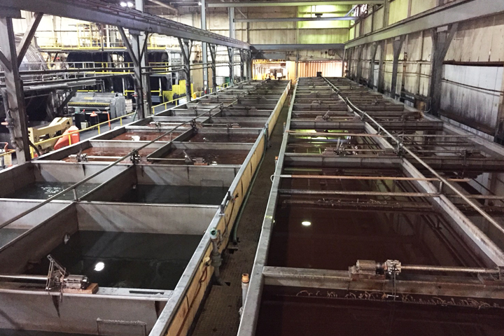 鞣しのスペースには72のピット槽が並んでおり、それぞれがミモザ(アカシア属植物)やケブラッチョ(ウルシ科植物)などの樹皮から抽出したタンニンを主成分として独自にブレンドされた鞣し剤で満たされ、充填と循環を行いながら常に品質が保たれています。