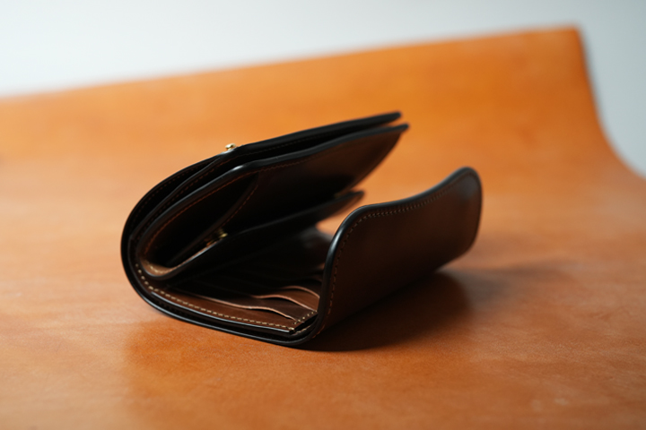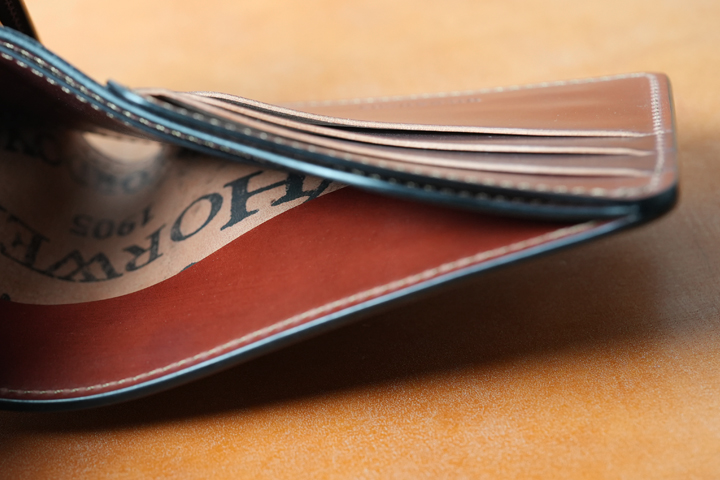 The Horween Company’s stamp is engraved on the bill compartment, making it both visible and discreet when used. This feature was introduced in the previous full Cordovan series. Due to its popularity, it has been added to the lineup once again this time.