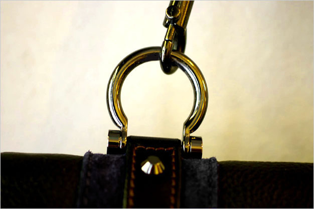 単一色のグラデーションということもあり、金具の色もいつもと少し変えています。通常、金具の色と言えば銀色か金色が一般的かと思いますが、黒ニッケル色という黒光りする金具を使用しています。
