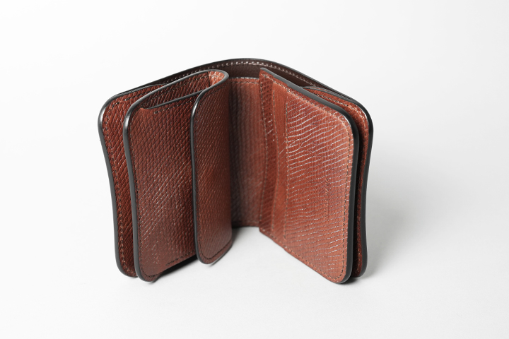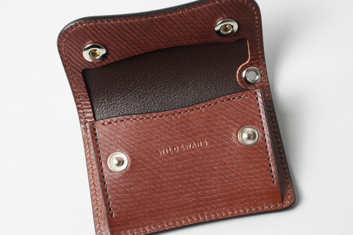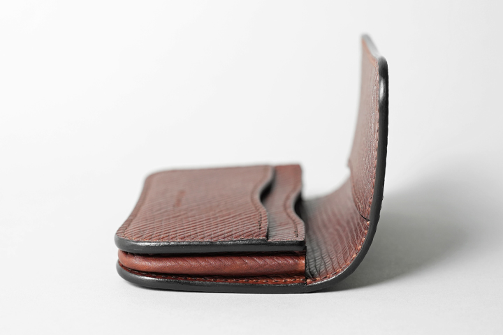 革自体をコバのような曲線に仕上げる珍しい技法で形作られている名刺入れ。WILDSWANS特有の曲線美を堪能できます。