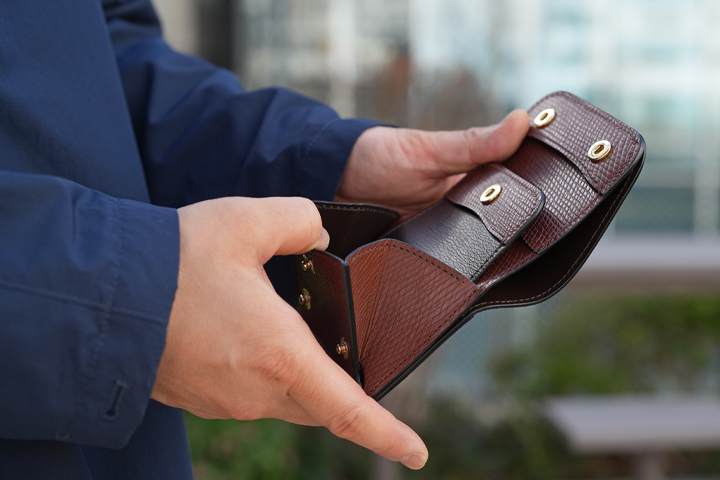 ひとつ持っているだけで現金派もキャッシュレス派も困らないアイテム。アイレット金具付きのモデルは別売りアイテムを組み合わせることでパスケースやキーケースにも。より多機能な使用が可能です。