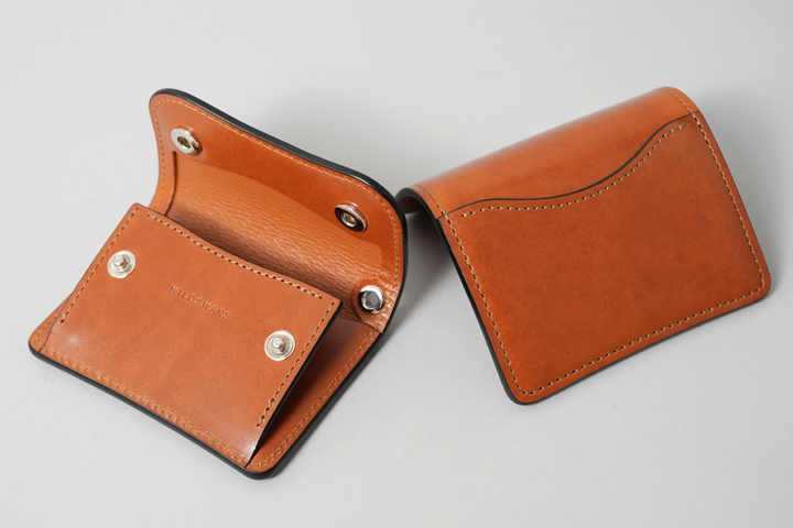 メイン財布として使用可能な収納力を持ったミニ財布2型です。CASAはコインケースフラップの特殊構造により、kf-003よりも数枚カードを多く収納することが出来ます。一方で、WILDSWANSの革小物の中では珍しいエッジや直線のデザインが特徴のkf-003。スマートな雰囲気でビジネスシーンにもマッチします。