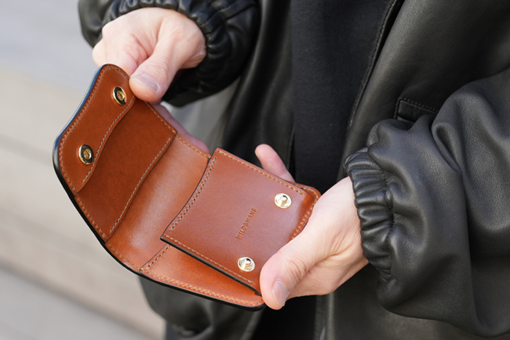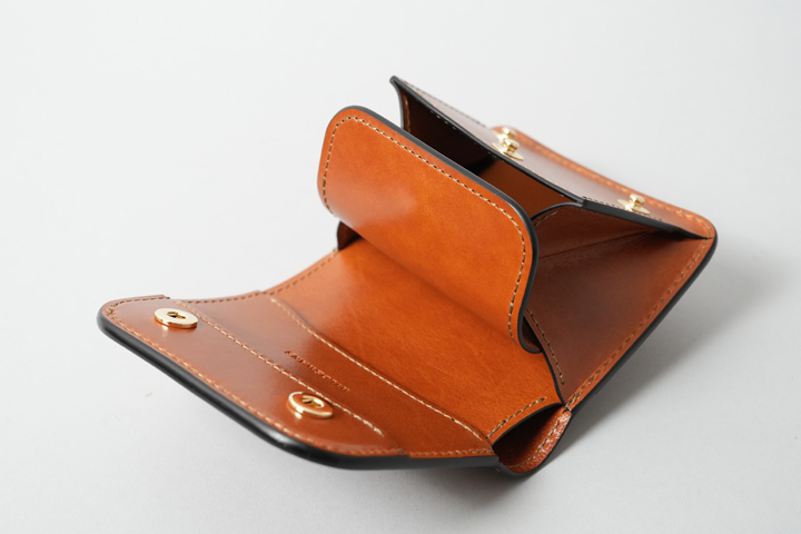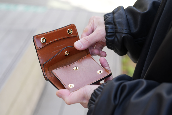 折り畳んだお札やカードも収納できるマルチなコインケース。ハトメが付属することで使用シーンがぐっと広がります。