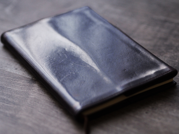 ちなみに満寿屋の5代目の川口さんには、A6サイズのMONOKAKIノート用に文庫本カバーのSUITED-Mをご使用いただいております。サドルプルアップのブラックを6~7年使用されており、革もしっとりと馴染んでテカテカに育っております。