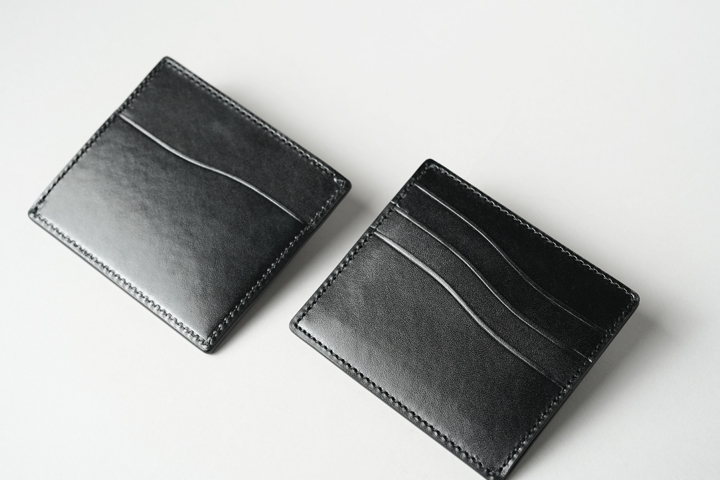 名前の通り、ミニサイズに製作したSHEPARD。あおりポケット状に縫製されていたSHEPARDⅢと違って、中心のポケットは袋状に縫製されています。紙幣も収納できるⅢと比べてカードに特化したケースとなっておりますので、用途によってお選びください。