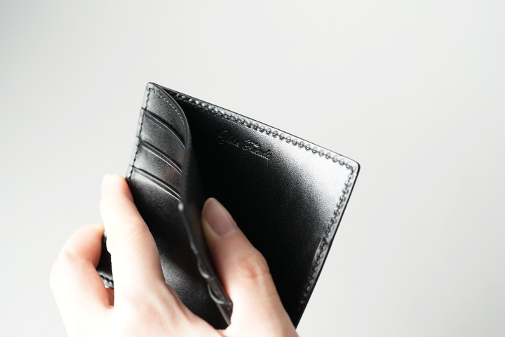 SHEPARDⅢは、SHEPARDⅡと比べて収納力や構造に違いはありません。もちろんⅡと同様に、2つ折りの紙幣をスピーディーに出し入れすることも可能です。若干のサイズダウンがなされており、使用感はそのままに、より携帯に適したサイズにリニューアルしています。