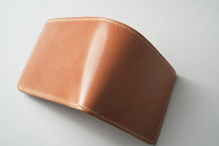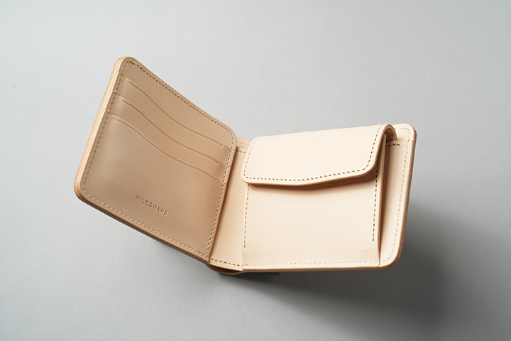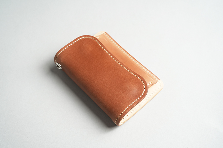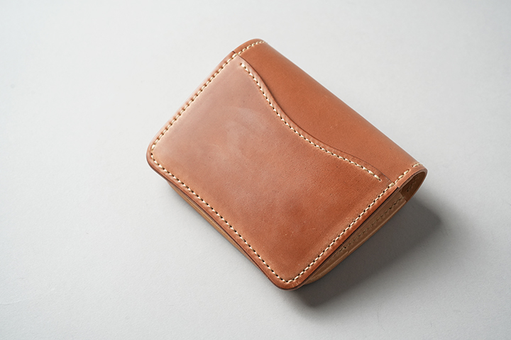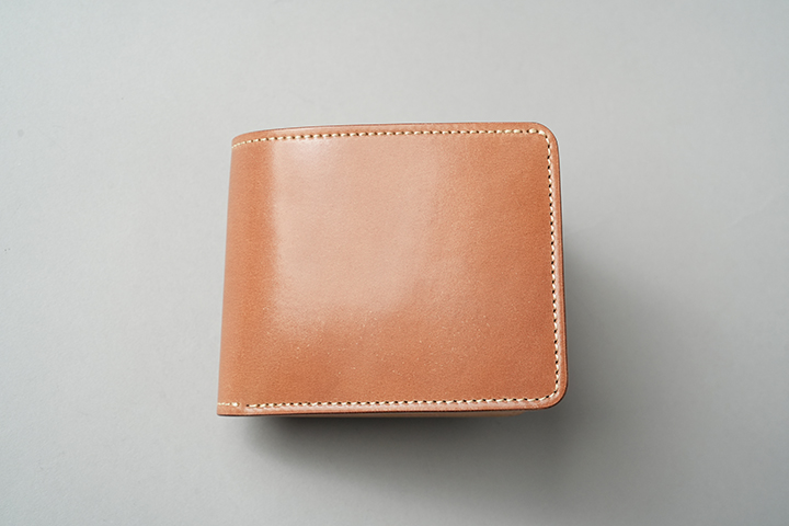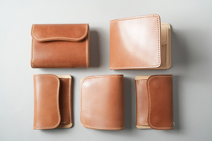 今回のラインアップの中では一番ボリュームの大きなENOですが、ボリュームがあるからこそ生み出せるシェルコードバンの重厚な艶感は一見の価値ありです。一方、一定の携帯性を備えながら、コロンとした見た目により非常に親しみのあるディテールがENOの大きな特徴となります。サドルプルアップの内装には所狭しとパーツが並び、十分なカード、コイン、紙幣が収納できます。